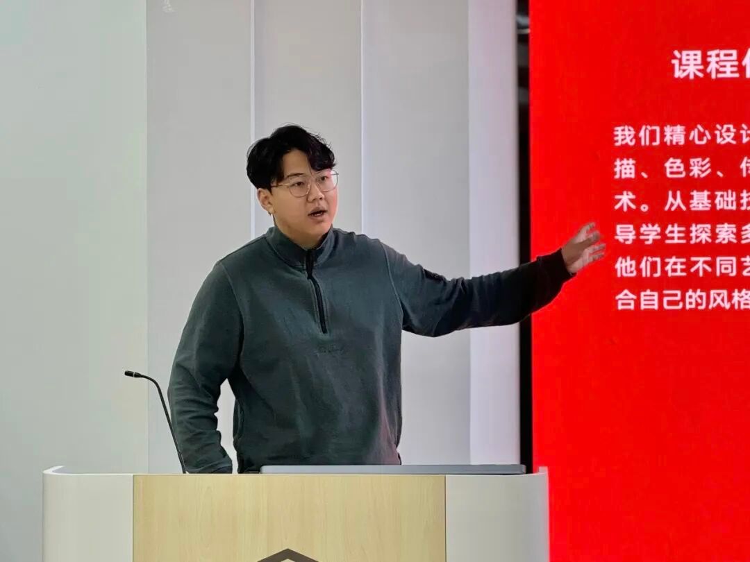 张钧乔同学结合自身经历,从支教初心、课外延伸、课堂实践、经验感悟、角色蜕变五个方面,细致讲述了支教过程中的挑战与成长,并分享了许多支教过程中令人难忘的温暖瞬间。他分享了如何因地制宜调整教学方案,也提到了乡村美育的现状与城乡美育的差距,呼吁同学们用自己的专业力量,让美育的种子在西部的土地上生根发芽,让更多孩子能拿起画笔,描绘心中的山川湖海与美好未来。