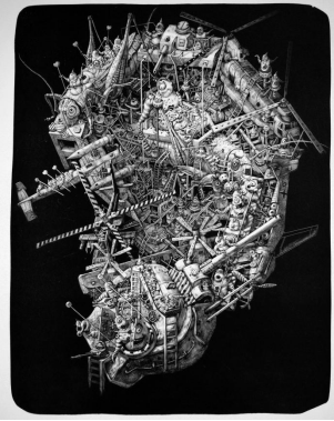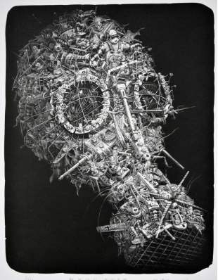 图 2 解构系列-顺风耳45x35cm 石版画2013年
