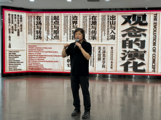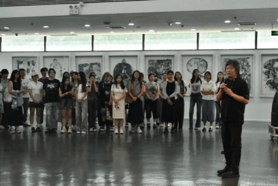 2025年9月10日,在2025年度国家艺术基金传播交流推广资助项目“观念的演化:1980年代以来的中国当代版画展”展览现场,天津美术学院副院长、造型艺术学院院长寇疆晖教授为造型学院全体研究生新生讲授开学第一课。