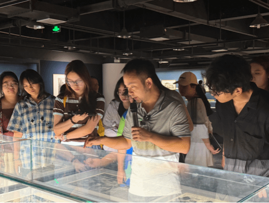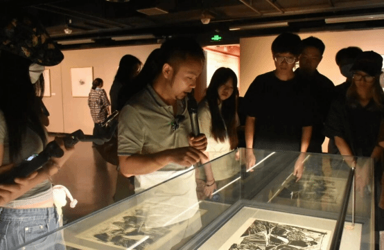 随后,造型艺术学院版画系副主任彭勇老师进行作品导览,带领学生们感受版画艺术在历史长河中的演变与传承。随着时代的发展,版画艺术的语言不断丰富,视野愈发开阔,手法愈发多元。