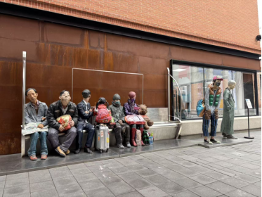 作品介绍:“G4472"是一节车厢的编码。作品通过具象的彩塑人物与场景相结合来“还原”当下社会普通人的境遇,希望表达都市中的人瞬间聚集又相互离散,肉身距离很近,心理距离却又很远的状态。作品塑造一个特定的时空,一个凝固的旅途,在这里的雕塑人物都有各自的故事。作品的金属座椅上特意留出空的座位,邀请观众可以走进作品并成为这个都市故事里的一份子,也可以在作品里寻找与发现被我们遗忘却又很有意义的日常细节。