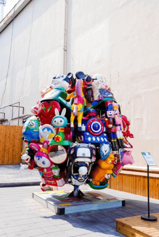 我想通过将众多带有童年回忆语言的摇摇车以及各种玩具形象无序却又紧密地组合在一起,构建出一个看似欢乐却又充满荒诞感的小世界。让玩具们脱离原本各自独立的存在语境,相互挤压、交错,形成一种梦幻与混乱交织的场景。意在打破现实逻辑惯性,营造一种巨大的视觉冲击。也让为生活打拼的人们可以短暂的回忆起童年的温馨,为平淡的生活带来一点小小的惊喜感。