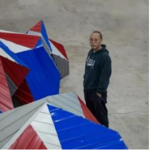 在飞速变迁的中国社会大环境下,建筑材料“彩钢板”被广泛应用。2017年末,艺术家谭勋创造性地制作了第一件以其为材料的“彩钢石”作品,命名《彩虹》。