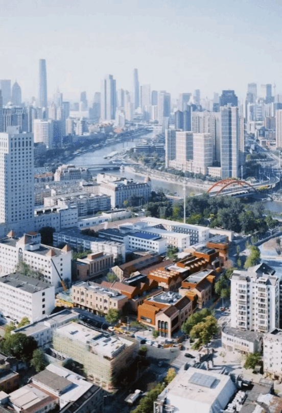 天美艺术街区是河北区与天津美术学院紧密合作的重要成果,位于海河之滨、天津之眼旁,作为天津市城市更新的代表项目之一,天美艺术街区为中国城市更新的实践结果。以“街区、社区、景区、校区”四区融合,推动城市更新、文化传承、商业创新与产业升级深度融合,作为津城艺文美学原力场。