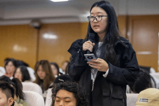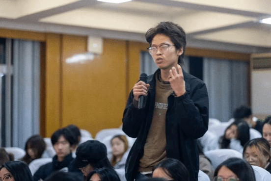 在场学生踊跃举手提问,将活动氛围推向高潮。“赵无极的艺术意境对当代青年来说,是否存在理解门槛?”面对学生的疑问,姚导笑着回应:“理解的门槛在于‘有心’。赵无极在东湖看到悬崖峭壁的瞬间找到创作灵感,正是因为他‘有备而来’。只要带着心意去观察、去积累,终有一天会与大师的精神产生共鸣。